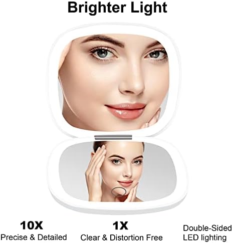 *1X and 10X Magnifying,LED lights With both sides Makeup Mirror* The 1X true light mirror is very clear and suitabel for dayly makeup. 10X magnifying mirror can view more details for makeup,such as to apply mascara, lipstick, blackhead/blemish removal, draw eyeliner. NOTICE: Keep the mirror 2-3 inches distance to your face